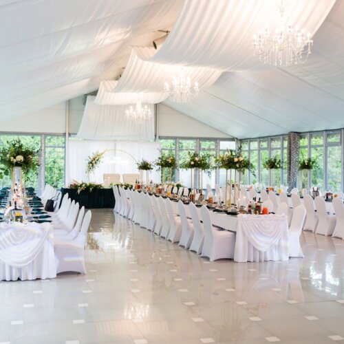 - salę bankietową z wydzielonym miejscem do tańca oraz podstawową aranżację stołów;